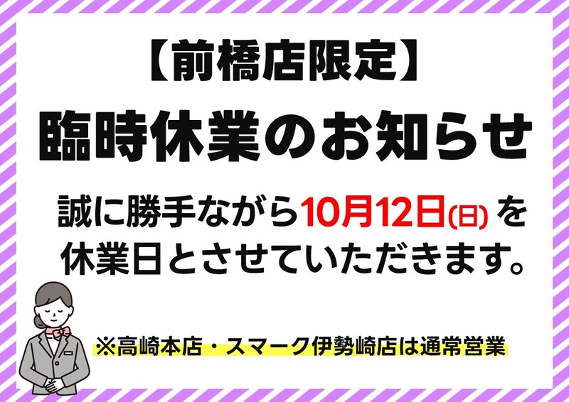 なお、高崎本店・スマーク伊勢崎店は通常営業です。